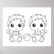Bons garotos de desenho animado bonitos em macacões com bíblias de estrelas correspondentes segurando batalhas de bebês. A bola de brinquedo está descansando entre eles. Feita para uma coloração fácil.