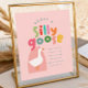 This cute adoption station sign lets party guests choose and take home a goose plush as a party favor. Perfect for a Two Silly birthday or any age, and ideal for silly goose, farm, or animal-themed parties. Pair with matching goose name tags from our collection for an adorable, interactive favor idea little ones will love.