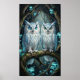 Poster Two wise, ancient white blue owls