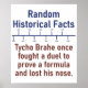A história é um mistério. Revele alguns desses mistérios com esse fato temático da história: Tycho Brahe uma vez lutou contra um duelo para provar uma fórmula e perdeu seu nariz. Excelente para triviais e fãs de história.