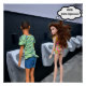 Duas pessoas estão em uma banheiro masculino, observando uma à outra usando os mictórios, com uma vestindo um vestido curto e parecendo muito com uma mulher. Uma com uma bolha de pensamento que diz "Uau, isso é impressionante"