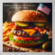 Um cheeseburger americano que regava a boca, com uma espessa e suculenta carne picada à perfeição, tocado com cheddar derretido, bacon crocante, alface fresca, tomate e picles. Enfeitado em um pão de sésamo e servido ao lado de batatas fritas ouros, esse hambúrguer incorpora os sabores ricos da culinária clássica americana. Uma pequena bandeira americana decora o prato, fazer-o um verdadeiro banquete patriótico.