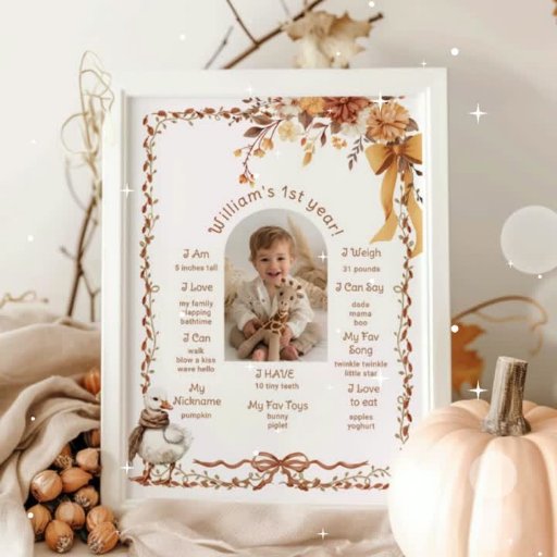 Um Bobo Obter Fotografia de primeiro aniversario de Queda de de Etapa Correspondência de Posters disponível.