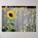 Aproveite esta imagem alegre de um campo de girassóis amarelos brilhantes com fundo preto e branco.