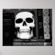 Imagem negra e branca de um crânio sentado em seu lugar na estante