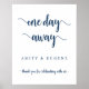 Moderno Rústico, Um dia de distância, Jantar de Rehearsal de Casamento Cartaz de Boas-Vindas, em script Azul-Marinho.