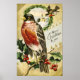 Cartão postal de natais vintages (1908) de Bamaí & Co com passarinho touro fofo. Original da Biblioteca Pública de Nova York.