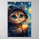 AI gerou arte de um gato mágico na noite estrelada no estilo de Van Gogh