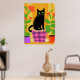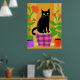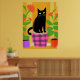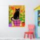 Poster Um Gato Preto Com Sede Púrpura Rosa