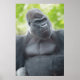 Um poderoso gorila de prateado olha para cima, sua figura imponente contra um pano de fundo vibrante. O Silverback reside no zoológico Twycross e pode também estar familiarizado com o canal SloggerVlogger.