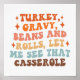 Este design lúdico e vibrante é perfeito para a temporada de outono, especialmente a Ação de Graças, com a frase cativante e divertida "Turquia, Gravy, Beans e Rolls, Deixe-me ver esse Casserole." O texto é organizado em um layout empilhado, com cada linha usando uma cor diferente de uma paleta quente, inspirada no outono. As cores vão desde laranjas ricas e castanhos até pínus macios, blues e amarelos, refletindo a atmosfera acolhedora e festiva das reuniões de outono. A fonte retrorreflectora e desajeitada adiciona uma sensação nostálgica e caprichosa ao design, enquanto as faíscas estreladas espalham-se por toda a parte melhora a vibração comemorativa.