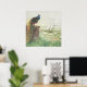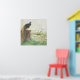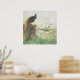 Poster Um Pavão Azul e uma Erva Branca com pintinhos