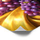 "Na toalha de ouro luxuosa, um aglomerado de uva peluda e suculenta esventa-se na luz suave. Suas matizes ricas de verde roxo profundo e vibrante criam um contraste espantoso contra o tecido zimador. A pele lisa das uvas reflete uma fina casca, convidando-se a alcançar e saborear seu sabor doce e suculento.