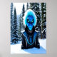 Uma alienígena azul na neve até seu estômago dentro profundo da floresta, vestindo roupas de inverno. Esta é uma arte gerada por IA.