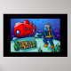 Um mergulhador do mar profundo deixa seu submarino vermelho para explorar o fundo do oceano e descobrir o tesouro afundado! Esta ilustração de estilo cartoon apresenta peixe, mergulhador, submarino, oceano e tesouro afundado na última aventura submarina! Este design impressão, colorido, arrojado e simples está disponível para sua personalização com uma faixa de excelentes de quadros em vários estilos e cores.