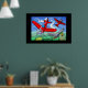 Dois aviões de dublê vermelho esculpidos pelo céu deixando rastros de fumaça branca. Um pato muito assustado bate suas asas para escapar do caminho dos dois aviões. Esta ilustração de estilo cartoon apresenta pássaros, aviões, visões aéreas e um céu azul profundo na última aventura voadora! Este design impressão, colorido, arrojado e simples está disponível para sua personalização com uma faixa de excelentes de quadros em vários estilos e cores.
