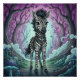Uma zebra pontiaguda embarca numa jornada mística através de uma floresta encantada, vestindo um arnês pontiagudo e um pingente de cruz ousado. Árvores, cogumelos brilhantes, e névoa girando em torno dela, enquanto borboletas e estrelas flutuam através da névoa azul-roxa. Esta ilustração surreal combina fantasia e rebelião. AI
