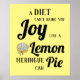 Se você ama torta e odeia dieta, esta é a poster para você. Declarar ao mundo a verdade com este slogan divertido "Uma Dieta não pode trazer-lhe alegria como Lemon Meringue Pie" A tipografia divertida com uma ilustração peculiar de torta de limão merengue faz deste um presente perfeito para a família e amigos de foodie. Slogan, design e ilustrações da artista Catherine Sweetman