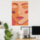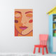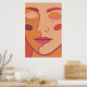 retrato brilhante, colorido e lacônico, de uma mulher com o rosto de uma mulher com olhos fechados, feito em estilo minimalista