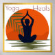 Uma garota fazendo yoga com Poster de fundo solar com legenda de ioga cura. É uma bela poster para iluminar sua sala de meditação. Disponível para impressão físico e download instantâneo também.
