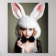 Poster Uma mulher vestindo um chapéu de coelho e uma grav