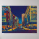 "An Night on Broad Street" é um impressão vibrante, colorido, retrorimpressionista, com compras, farmácias, e coisas do gênero em contato com Americanas centros. Este impressão de mídia mista apresenta azuis ricos, verdes e amarelos.