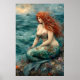 IA gerou arte de uma bela sereia descansando sobre uma rocha ao lado do mar que tem muitas flores bonito crescendo ao seu redor