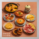 Esta imagem mostra uma vibrante variedade de tapas em espanhol, cada prato apresenta uma explosão de sabor e cor. Da paella icônica às igrejas saborosas, essa imagem captura a essência da culinária espanhola, celebração de ingredientes frescos e sabores ousados