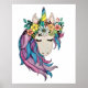 Poster Unicórnio Com Flores Selvagens Em Aquarela