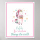 Adicione inspiração ao quarto das crianças ou berçário com este lindo pôster de unicórnio inspirador. Este design apresenta um unicórnio rosa com juba azul e rosa segurando uma câmera, cercado por estrelas em rosa, verde e amarelo. Abaixo, texto colorido manuscrito diz "Pegue o arco-íris, Mude o mundo."
