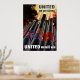 Este poster de guerra de vintage declara, "Unidos Somos Fortes, Unidos Ganharemos". Apresenta as bandeiras das Nações Aliadas durante a Segunda Guerra Mundial, ligadas aos canhões que disparam para o céu. Esta design seria excelente para qualquer um que ama a história ou WW2. Celebrar a História Americana e Mundial com este produto de poster de guerra, que foi restaurado digitalmente. Quer mais produtos militares e históricos? Check-out
