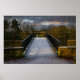 Experience the quiet beauty of a crisp winter dawn in West Yorkshire. This photograph features the arched footbridge crossing the A650 in Bradford, coated in a delicate layer of morning frost. Tire tracks and footprints create a textured leading line through the centre of the frame, drawing the eye toward a dramatic sky where the rising sun fights through heavy, low-hanging clouds. A perfect piece for those who appreciate urban photography, Northern English landscapes, or the serene, chilly atmosphere of a winter's morning.