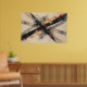 Dynamic abstract art with diagonal black and gray stripes over a cream background. Vibrant touches of orange and red plus ink splatters create movement and energy. Ideal for decorating modern spaces seeking boldness, artistic expression, and an urban, contemporary look.