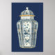Poster Urna Asiática Decorativa em Azul e Branco