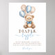 Urso de pelúcia com balões, poster de fralda de chá de fraldas azul-rapaz.