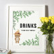 Urso Bonito No Poster de Chá de fraldas de Bebidas de Madeira Caso precise de ajuda sobre o design não hesite em contactar o armazém.