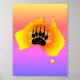 O pôr do sol retrógrado com pata de urso. Arte de parede personalizada. Versão ensolarada para o mapa australiano e cores do arco-íris pastel ao fundo. Ideia de presentes para ursos e seus fãs na Austrália