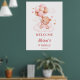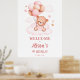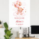 Urso de pelúcia rosa com balões sobre nuvens com estrelas festa de aniversário símbolo personalizado de boas-vindas.