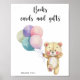 "Não podemos esperar". Celebrar com esta festa de chá de fraldas do ursinho de pelúcia! Urso de pelúcia bonitinho de aquarela com balões coloridos. Fundo com céu azul-rosa-aquarela. Itens correspondentes disponíveis.