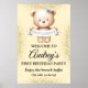 Poster de aniversário de ursinho bonitinho, mude o texto para o que quiser quando você pedir. Este sinal será facilmente convertido para os tamanhos de 20 x 30 ou 24 x 36 polegadas