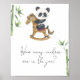 Podemos esperar chá de fraldas convite. Urso panda, de cor aquática, bonito, no cavalo de brinquedo e no bambu. Itens correspondentes disponíveis.