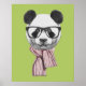 Esta design apresenta um urso panda giro vestindo óculos e um cachecol rosa.