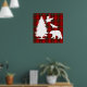 Um design elegante para o inverno com fundo de tartã vermelho, preto, verde e animais de floresta e árvore!