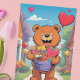 Celebre o amor e a alegria com este pôster de urso de pelúcia alegre. Com um urso feliz carregando uma cesta colorida de presentes e cercado por corações brincalhões, esta obra de arte é perfeita para decoração do Dia dos Namorados, quartos de crianças ou como um presente doce para alguém especial. Uma ilustração vibrante e calorosa que espalha felicidade onde quer que seja exibida.