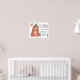 Aqui está um adorável pôster para berçário de bebê que tem um tema colorido e uma mensagem positiva também! Ele apresenta um ursinho marrom fofo vestido com adornos tribais, contas e penas. Ele está segurando uma pena estilosa laranja e azul, e um pássaro laranja e turquesa pousa em sua perna. Ao lado dele há uma imagem de coração com uma flecha atravessando-o. O texto no topo em preto diz "SEJA CORAJOSO pequeno", e abaixo, em turquesa, "Sonhe com as coisas maravilhosas que VOCÊ VAI FAZER!". A parte inferior do texto pode ser personalizada. Na borda direita há uma seta para cima com uma pena estilosa em turquesa, dourado e rosa.