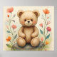 Esta poster horizontal apresenta uma aquarela branca de um doce ursinho amigável com flores bonitinhas.
