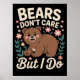 Esta ilustração encantadora apresenta um urso bonito cercado por flores e folhas coloridas. O texto "Ursos Não Se Importam, Mas Eu Faço" é exibido de forma destacada, criando um tema lúdico e afetuoso. O vibrante design capta um sentido de cuidado e ternura, perfeito para transmitir uma mensagem de afeto e de pensamento.