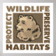 Ursos e seus hábitats são o foco desta design única que apresenta uma imagem de um urso e palavras que dizem: PROTECT WILDLIFE - PRESERVE HABITATS. Se você ama a natureza, o excelente ao ar livre e especialmente os ursos, você vai adorar este design. Defender a responsabilidade ambiental do ser humano!