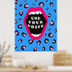 Use sua voz! Fale, mesmo que sua voz trema. O fundo de impressão do leopardo em azul e rosa mostra uma vibrante boca rosada gritando.