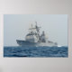 O cruzador de mísseis guiados USS Monterey (CG 61) executa manobras de alta velocidade no Golfo Árabe. O USS Monterey é implantado apoiando operações de segurança marítima e esforços de cooperação em segurança de teatro na área de responsabilidade da Frota 5 (Fotografia do Especialista em Comunicações de Massa Billy Ho, de 3ª Classe) dos EUA.